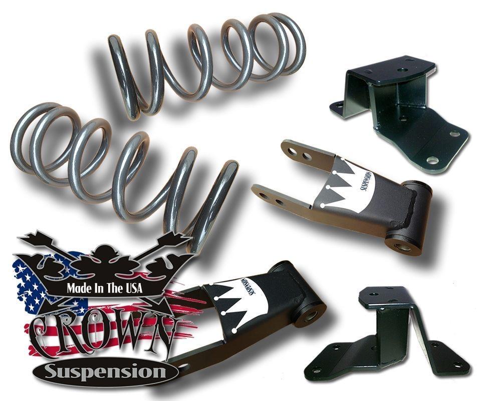 This kit includes a pair of lowering 3" Springs. Also included are rear adjustable 1"-2" Drop Shackles and a 2" Drop Hanger. With this kit your truck will sit level taking the stink bug (rear sitting higher) look out of your truck.